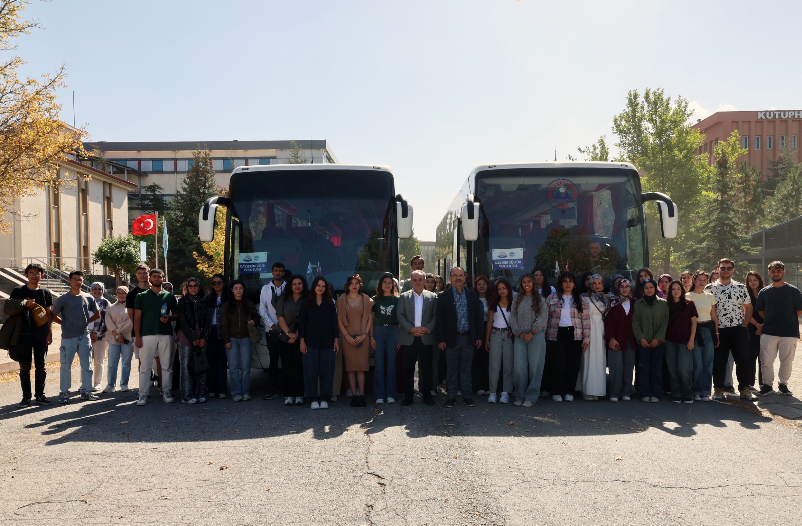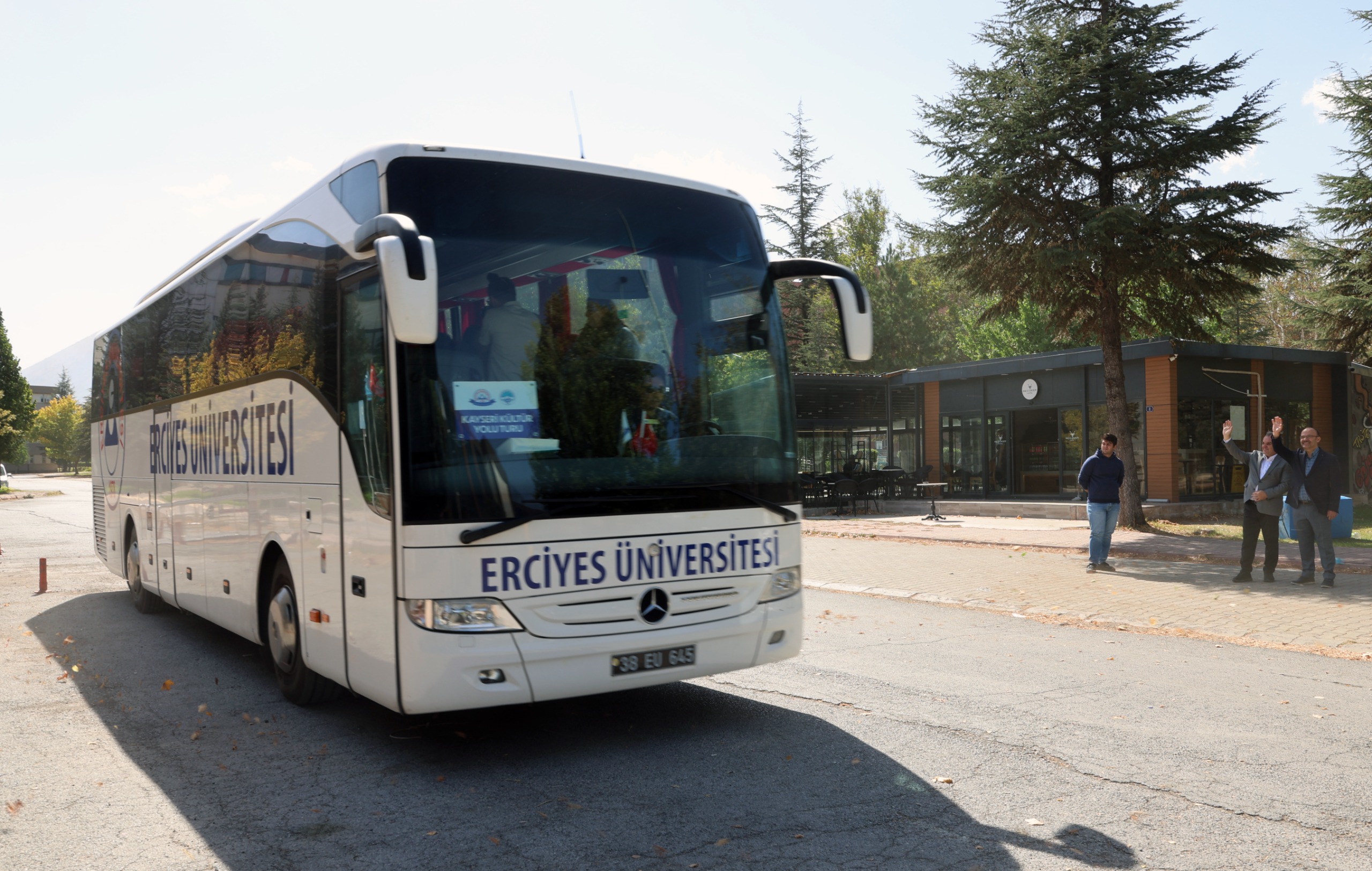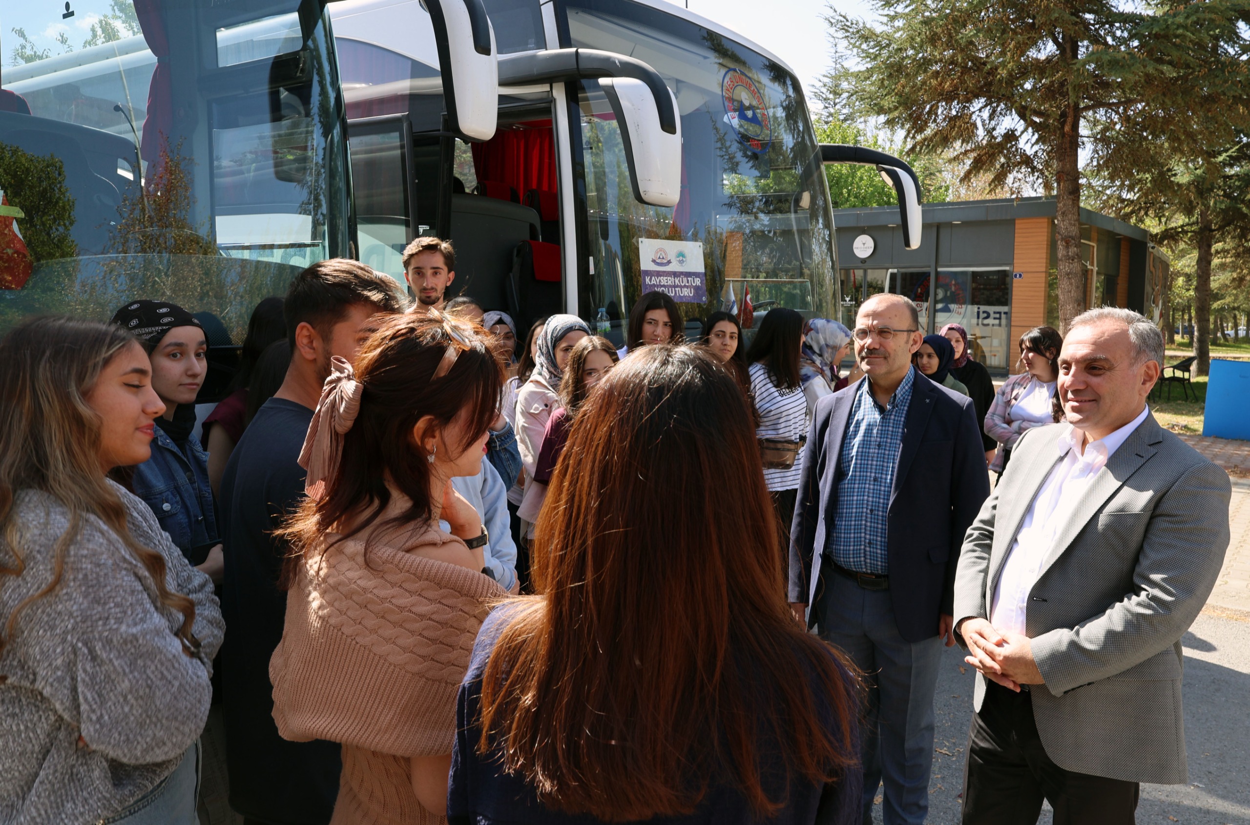 Konuşmaların ardından Rektör Prof. Dr. Fatih Altun ve Kayseri Büyükşehir Belediyesi Genel Sekreter Yardımcısı Mücahit Soyak tura katılan öğrencileri yolcu etti.