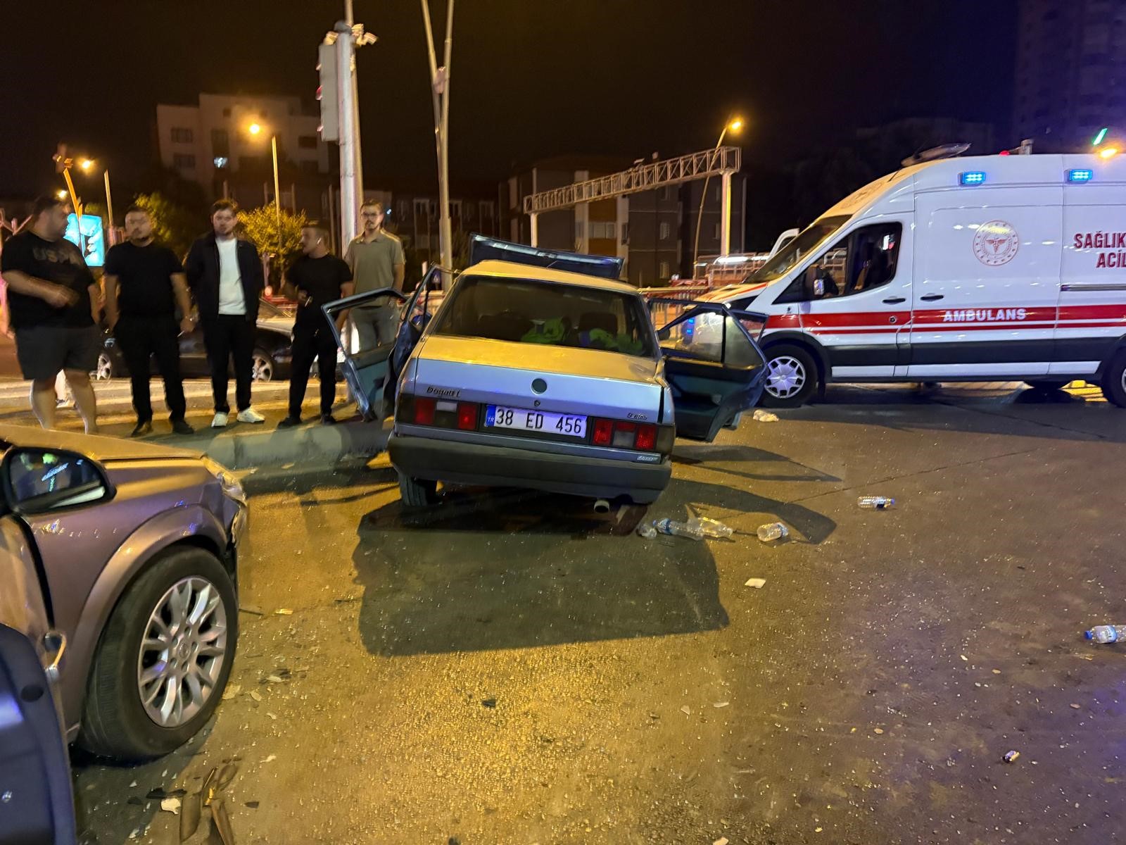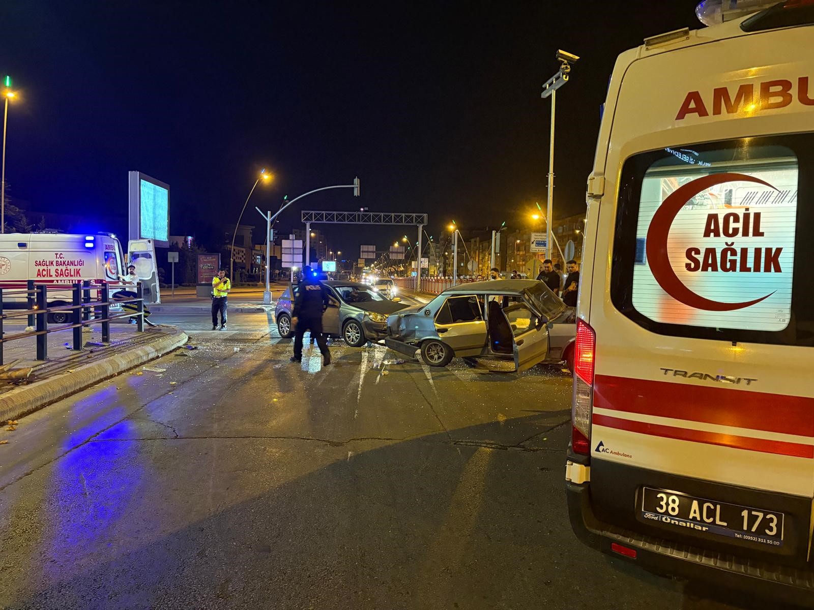 Edinilen bilgiye göre, ilçeye bağlı Hunat Mahallesi Mustafa Kemal Paşa Bulvarı ve Nuh Naci Yazgan Caddesi kesişimin de meydana gelen trafik kazasında; İ.Ç. yönetimindeki 38 ANC 885 plakalı Opel m marka otomobil G.B. idaresindeki 38 ED 456 plakalı kuş türü tabir edilen Tofaş marka otomobile ortadan çarptı. Tofaş marka otomobil çarpmanın etkisiyle kaldırıma çıkarak, ortadan büküldü. İhbar üzerine bölgeye polis ve sağlık ekipleri sevk edildi. Polis ekipleri çevrede güvenlik önlemi alarak, yolu trafiğe kapatırken, sağlık ekipleri de Tofaş otomobilde bulunan ve kazada yaralanan sürücü G.B., S.Ç. ve C.S.'yi ilk müdahalenin ardından ambulansla Erciyes Üniversitesi Tıp Fakültesi Hastanesi'ne kaldırdı. Ekiplerin incelemelerinin ardından otomobiller çekici ile kaldırıldı.
