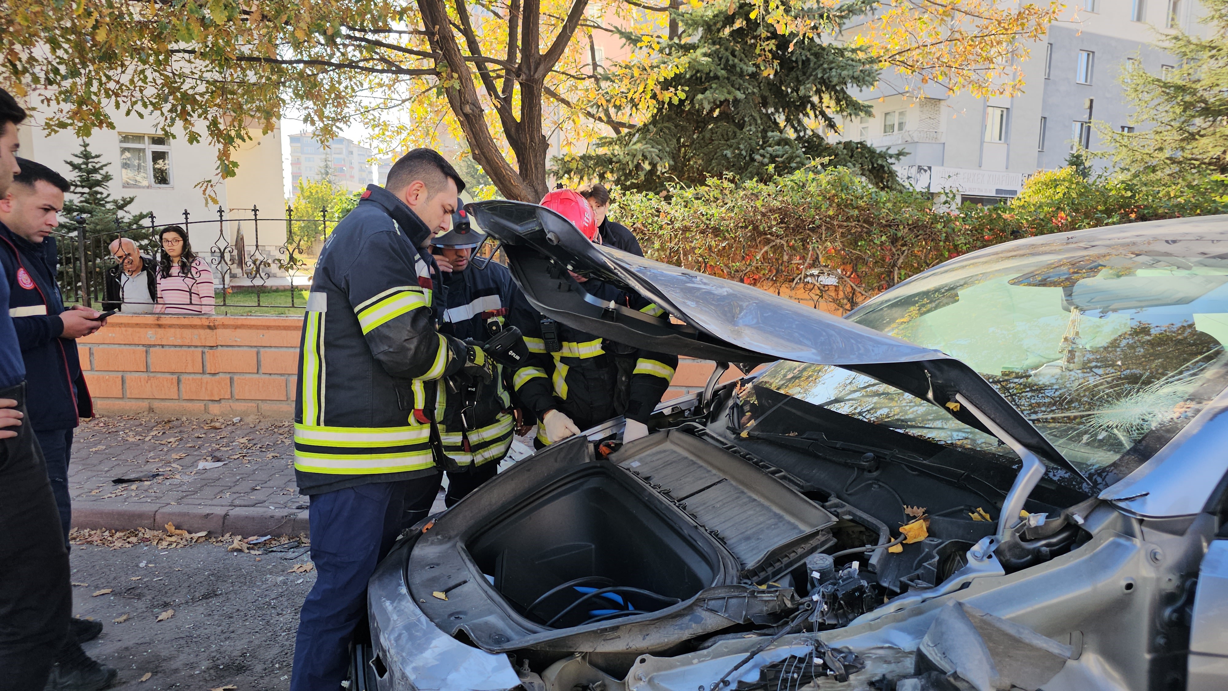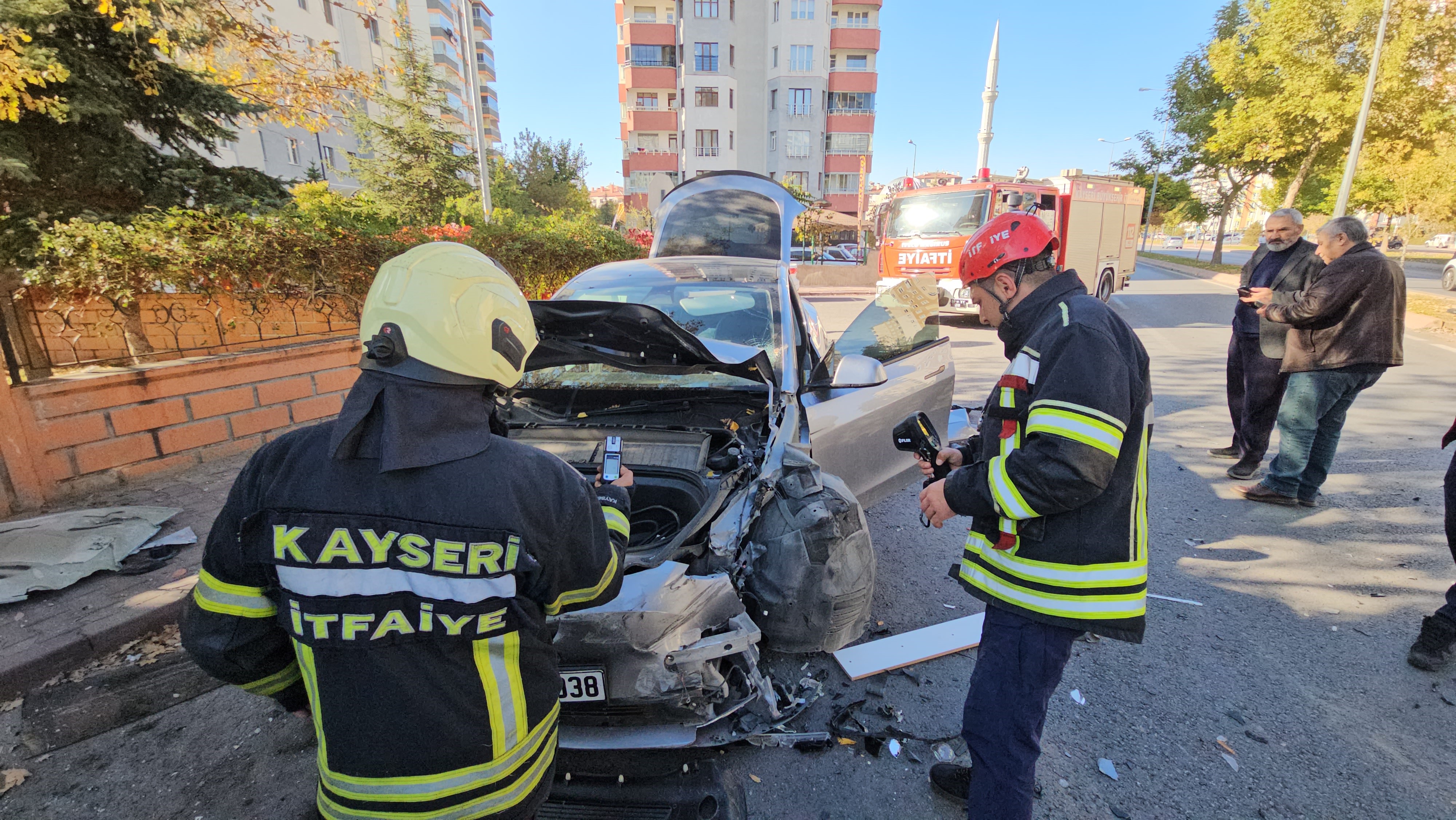 Kayseri'nin Kocasinan ilçesinde bir sürücü, otomobilinin hızını denerken önce duvara, daha sonra park halindeki kamyona çarptı. Kazada sürücü hafif yaralanırken, otomobil kullanılamaz hale geldi. Edinilen bilgiye göre, Barbaros Mahallesi Oymak Caddesi'nde N.E. adlı sürücü, 38 ABT 038 plakalı Tesla marka otomobilinin hızını denemek için kırmızı ışıkta gaza baştı. Bir süre sonra direksiyon hakimiyetini kaybeden N.E. önce bir apartmanın duvarına, daha sonra park halindeki 42 ANA 669 plakalı kamyonete çarptı. İhbar üzerine bölgeye polis, sağlık ve itfaiye ekipleri sevk edildi. Polis ekipleri çevrede güvenlik önlemi alırken, sağlık ekipleri kazada hafif yaralanan N.E.'yi ilk müdahalenin ardından tedbir amaçlı ambulansla hastaneye kaldırdı. İtfaiye ekipleri otomobilde oluşabilecek olumsuzluklara karşı ısı ve gaz ölçümü yaparken, kullanılamaz hale gelen otomobil çekici ile kaldırıldı.