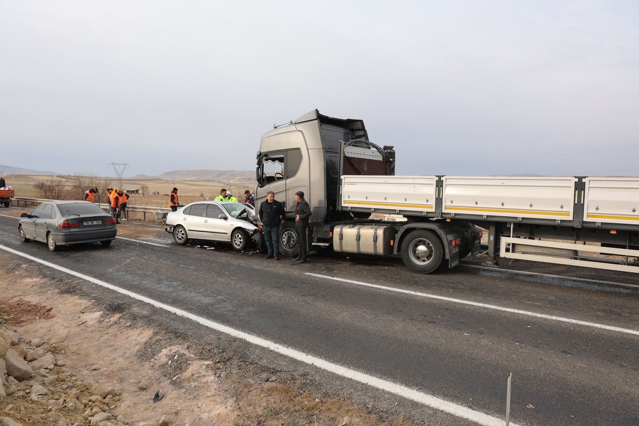 Nevşehir'de karşı şeride geçen otomobille tırın kafa kafaya çarpışması sonucu 1 kişi hayatını kaybederken 1'i ağır 3 kişi yaralandı.