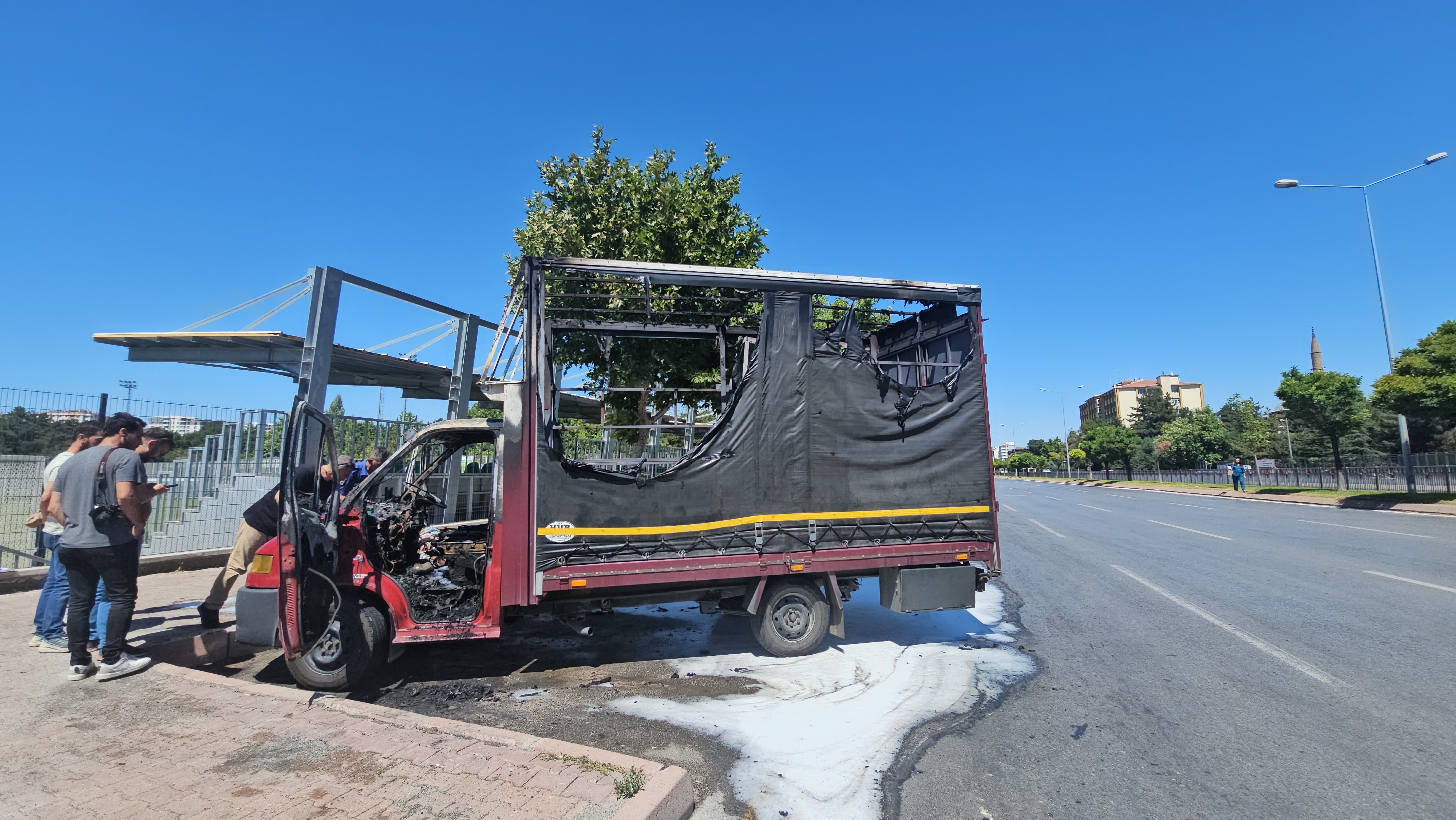 Edinilen bilgiye göre, Barbaros Mahallesi Erkilet Bulvarı üzerinde park halindeki 40 ACG 406 plakalı kamyonet aniden alev aldı. Alevler kısa sürede büyüyerek aracı sararken, ihbar üzerine bölgeye polis ve itfaiye ekipleri sevk edildi. Polis ekipleri çevrede güvenlik önlemi alırken, itfaiye ekipleri de yangına müdahale etti. Çıkan yangının söndürülmesinin ardından polis, hasar gören kamyonette inceleme yaptı.