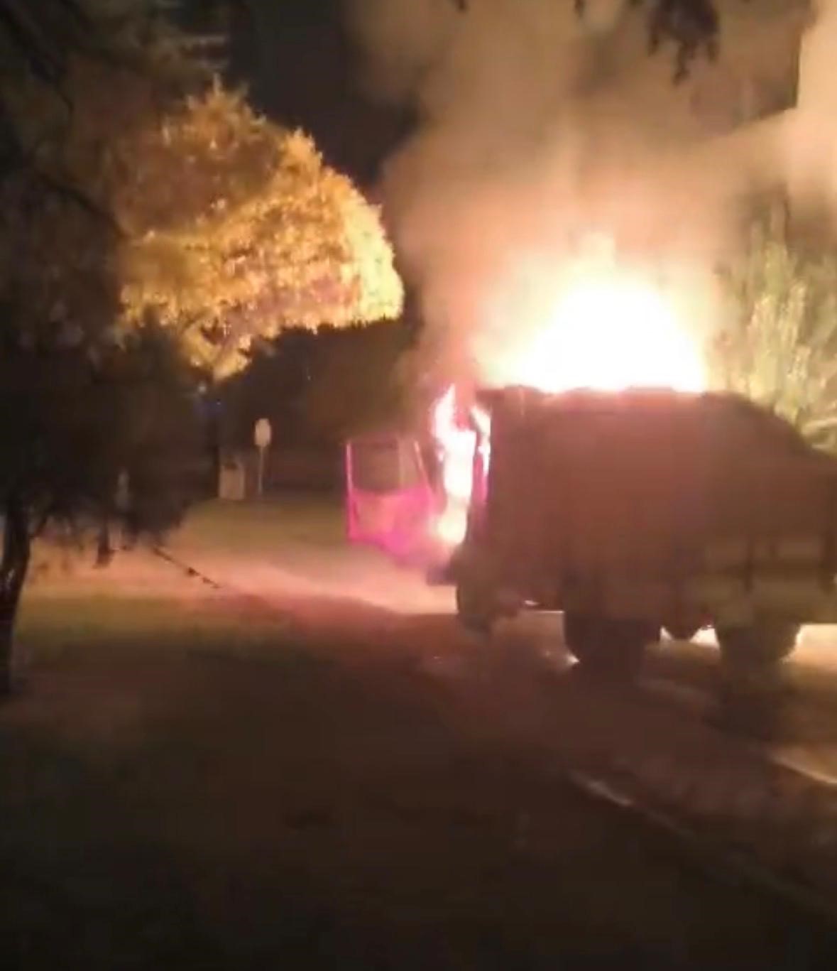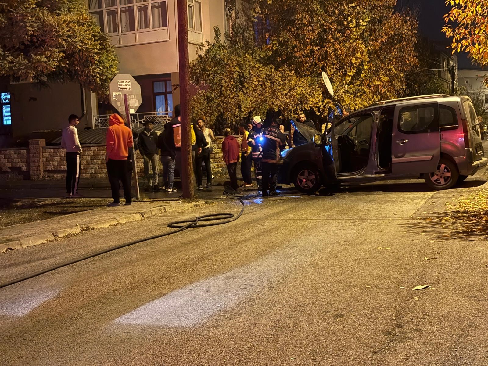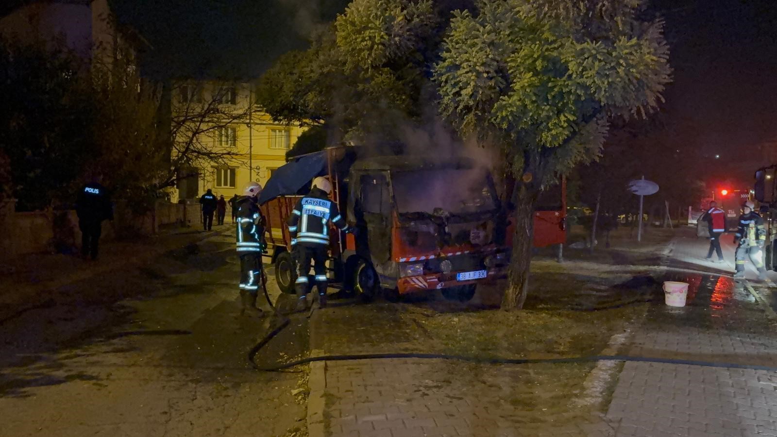 Kayseri'nin Melikgazi ilçesinde aynı kişiye ait park halindeki kamyon ve ticari araç alev aldı. Olayda alev alan kamyon hareket ederken, araçlar itfaiye ekipleri tarafından söndürüldü. Edinilen bilgiye göre, ilçeye bağlı Osmanlı Mahallesi Dalgıç Sokak'ta meydana gelen olayda; İ.D.'ye ait 38 AJF 330 plakalı kamyon ve 34 UF 7008 plakalı ticari araç park halindeyken, henüz bilinmeyen bir sebepten alev aldı. Yangında alev alan kamyon çalışarak ileri doğru kısa süre hareket ederken, ihbar üzerine bölgeye polis, sağlık ve itfaiye ekipleri sevk edildi. Polis ekipleri çevrede güvenlik önlemi alırken, itfaiye ekipleri de yangına müdahale etti. Araçlardaki yangın kısa sürede söndürülürken, araçlar kullanılamaz hale geldi. Polis ekipleri kundaklama ihtimali üzerinde dururken, olayla ilgili çalışmalar sürüyor. Olayla ilgili soruşturma başlatıldı. Yangını uykudayken haber aldığını dile getiren İ.D.'nin kardeşi H.D., "'Arabalar yanıyor' dediler bizde hemen çıktık. Baktık arabalar yanıyor. Biz hortumlarla müdahale etmeye çalışırken, kamyon kendi kendine çalıştı. Bir ticari aracımız ve kamyonumuzu yaktılar. Düşmanımız ve husumetli olduğumuz biri yok. Nasıl oldu bilmiyorum" dedi.