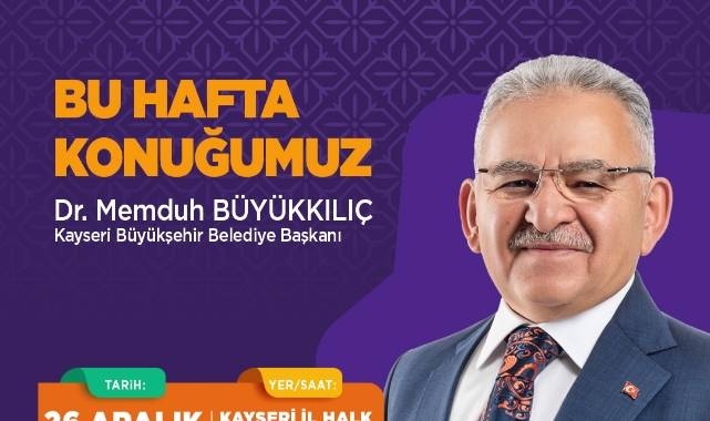 Kayseri Büyükşehir Belediye Başkanı Dr. Memduh Büyükkılıç, Valilik, Büyükşehir ve İl Kültür Turizm Müdürlüğü tarafından düzenlenecek Şehir Sohbetleri programının konuğu oluyor. Şehir Sohbetleri programı, 26 Aralık Cuma günü saat 16.30’da Kayseri İl Halk Kütüphanesi’nde düzenlenecek.