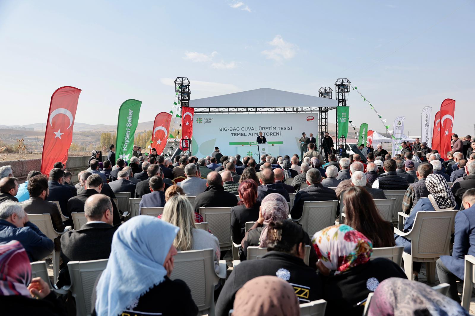 Kayseri Şeker, Bünyan’a Cumhuriyet tarihinin en büyük sanayi yatırımlarından birini kazandırıyor. Yatırım bedeli 111 milyon TL’yi aşan big-bag çuval, balya streç ve malç, polietilen iç torba ve iş elbisesi üretim tesisi olmak üzere dört ayrı üretim tesisinin temeli, düzenlenen törenle atıldı. Yatırımlarıyla Orta Anadolu’nun dört bir yanını adeta ihya ve imar eden Kayseri Şeker, Kayseri’nin Bünyan İlçesi’ne de, Bünyan tarihinin en büyük sanayi tesisini kazandıracak.