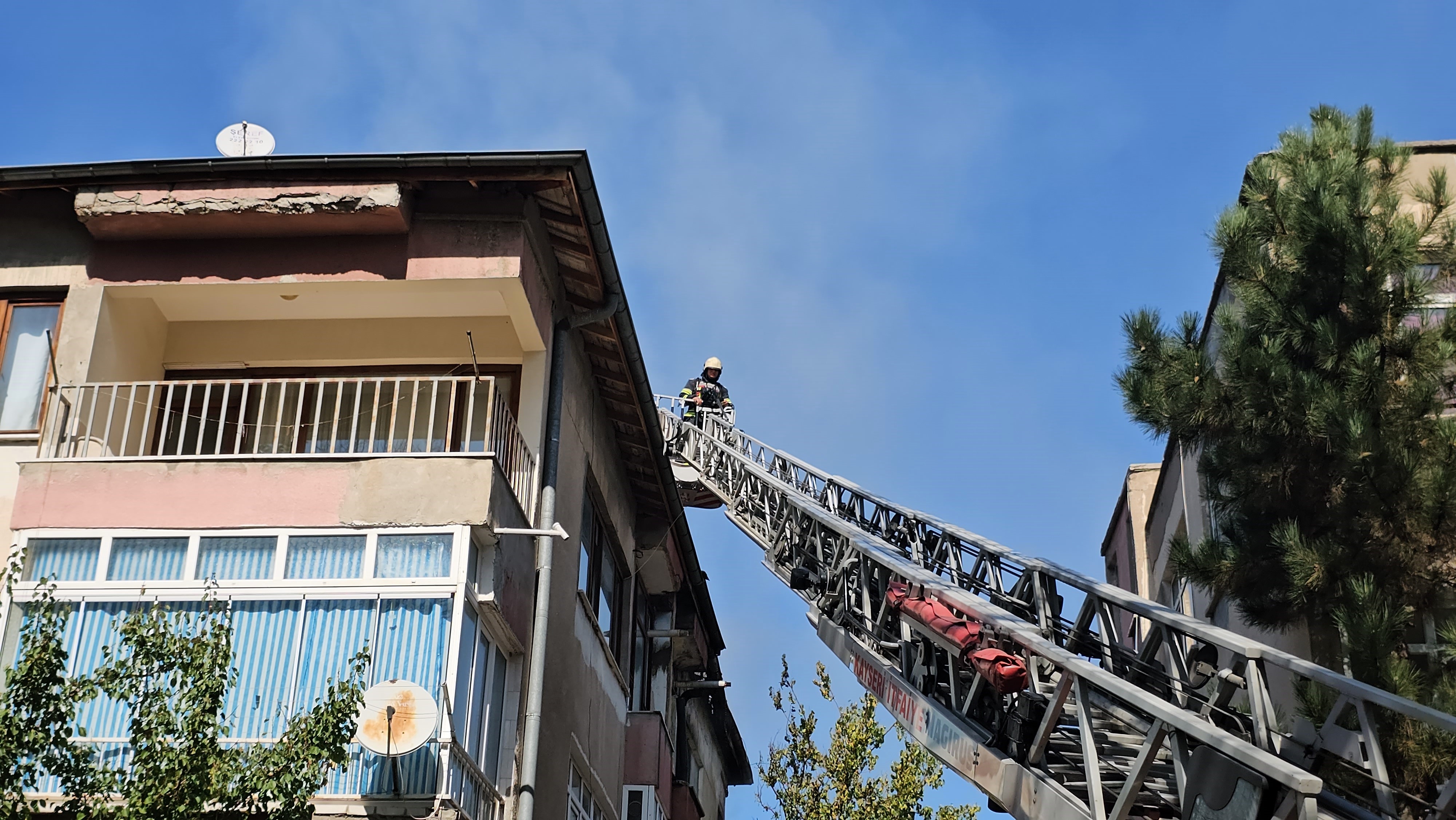 Kayseri'nin Talas ilçesinde sobayı yakmak isteyen bir kişi evi yaktı. Evde çıkan yangın 3 katlı binanın çatısına da sıçrarken, alevleri itfaiye ekipleri söndürdü.