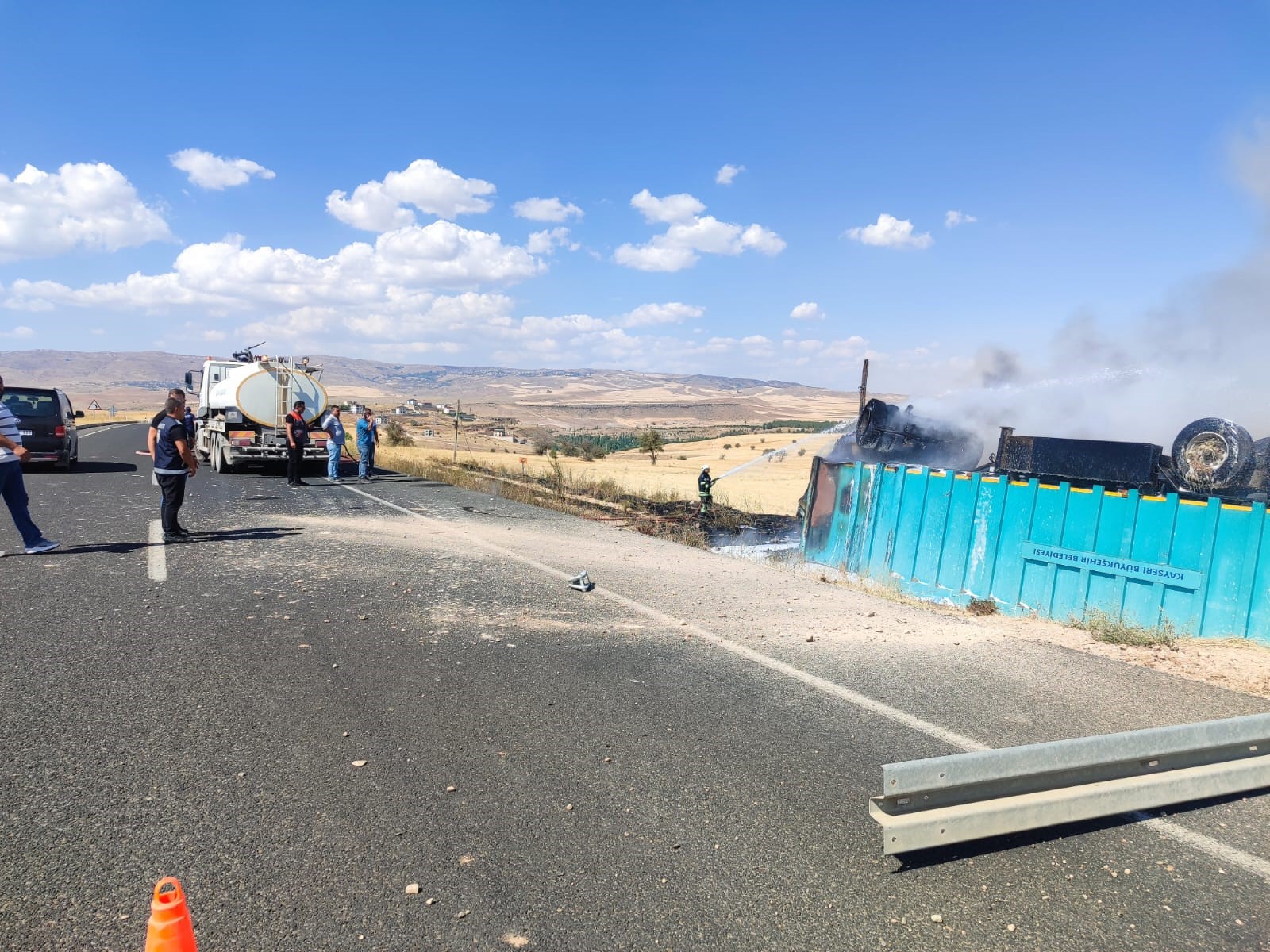 Edinilen bilgiye göre; Kayseri-Bünyan yolunda meydana gelen kazada; ismi öğrenilemeyen sürücünün kullandığı 38 ALL 789 plakalı tırın önüne iddiaya göre ölü domuz çıkınca, sürücü direksiyon hakimiyetini kaybetti. Tırın devrileceğini anlayan sürücü atlarken, yoldan çıkan tır bir süre devrildi. Tır devrildikten sonra alev alırken, ihbar üzerine bölgeye polis, sağlık ve itfaiye ekipleri sevk edildi. Polis ekipleri çevrede güvenlik önlemi alırken, itfaiye ekipleri de yangına müdahale etti. Alevler ekiplerin yoğun çalışması sonucu söndürüldü. Kazayı yara almadan atlatan sürücü ise tedbir amaçlı tedavi altına alındı. Geniş çapta maddi hasarın oluştuğu tır çekici ile kaldırıldı.