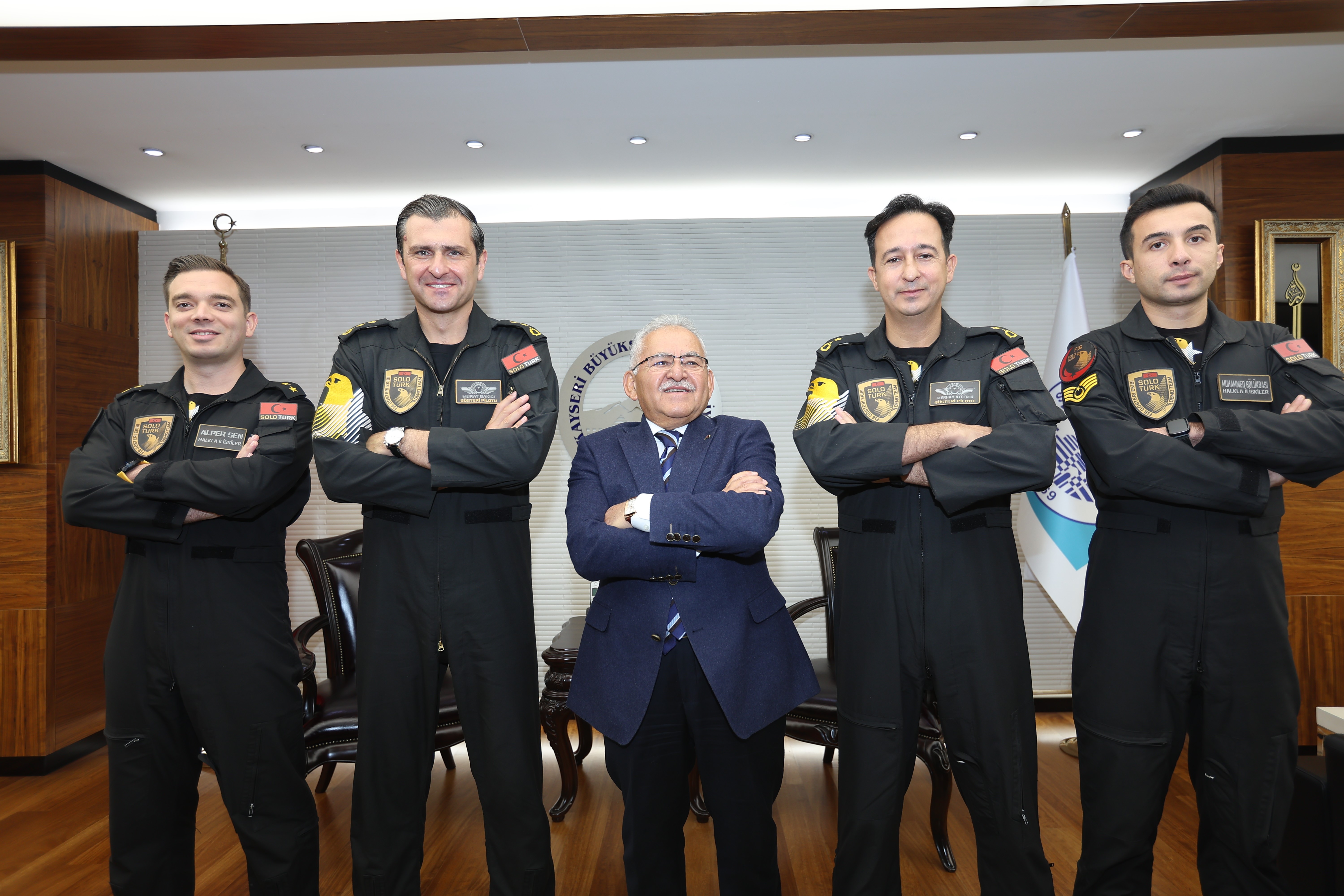 Kayseri Büyükşehir Belediye Başkanı Dr. Memduh Büyükkılıç, Türkiye’nin gururu SOLOTÜRK’ün 1. Pilotu Yarbay Murat Bakıcı ve Garnizon Komutanı Hava Pilot Tuğgeneral Hasan Volkan Güleryüz’ü başkanlık makamında ağırladı. Ziyaret, 17-19 Ekim tarihleri arasında düzenlenecek olan ve bu yıl 7’ncisi gerçekleşecek Kayseri Bilim Festivali kapsamında yapılacak SOLOTÜRK gösteri uçuşu öncesinde gerçekleşti. Festivalin ikinci günü olan 18 Ekim’de, Recep Tayyip Erdoğan Millet Bahçesi semalarında nefes kesici bir performans sergileyecek olan SOLOTÜRK, bu ziyaretle Kayseri halkına verdiği önemi bir kez daha gösterdi.
