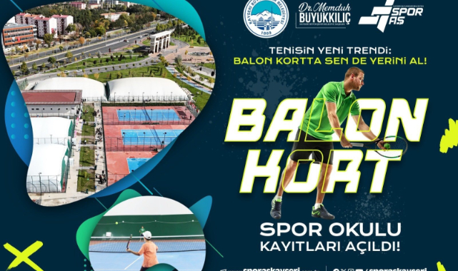 Kayseri’de tenisin yeni trendi Balon Kortta gerçekleşecek tenis spor okuluna kayıt yaptırmak isteyen tenis severler, www.sporaskayseri.bel.tr internet adresi üzerinden kayıt işlemlerini gerçekleştirebilecekler.