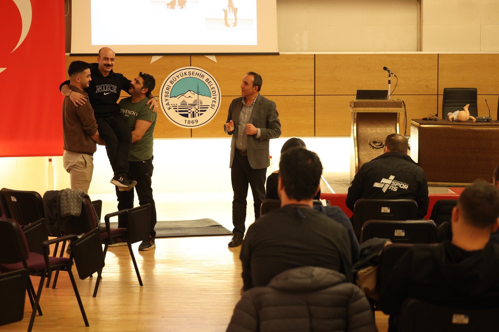 Altın Bayrak Ödüllü Avrupa Spor Şehri unvanına sahip ve Dünya Spor Başkenti adayı Kayseri’de, Büyükşehir Belediye Başkanı Dr. Memduh Büyükkılıç’ın spor ve sporcuya tam destek vizyonu doğrultusunda faaliyetlerini sürdüren Kayseri Büyükşehir Belediyesi Spor A.Ş., personeline yönelik nitelikli eğitimlerini sürdürüyor. Bu çerçevede Spor A.Ş. tesislerinde görev yapan personele yönelik ilk yardım eğitimi düzenlendi. Eğitimde, acil durumlarda hızlı ve doğru müdahale yöntemleri, temel yaşam desteği, boğulma, kanama ve yaralanmalarda ilk müdahale gibi hayati bilgiler detaylı bir şekilde aktarılırken katılımcıların, teorik bilgilerin yanı sıra uygulamalı eğitimlerle desteklendiği program, saha güvenliği ve acil durum yönetimi konusunda önemli bir farkındalık oluşturdu.