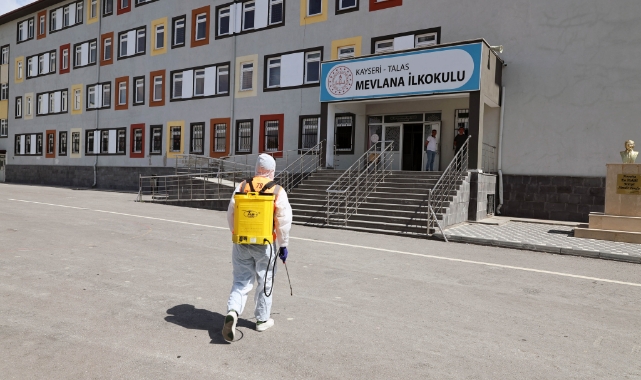 Talas Belediyesi; ara tatilde ilçe genelindeki okullara yönelik detaylı hijyen ve dezenfeksiyon çalışması başlattı.