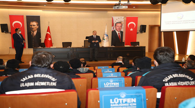Karayolları 6. Bölge Müdür Yardımcısı Ömer Baylar ise hizmet ağında 700 kilometre yolu bulunan Talas Belediyesi ekiplerinin karla mücadelede dikkat etmesi gereken konular hakkında bilgiler verdi.