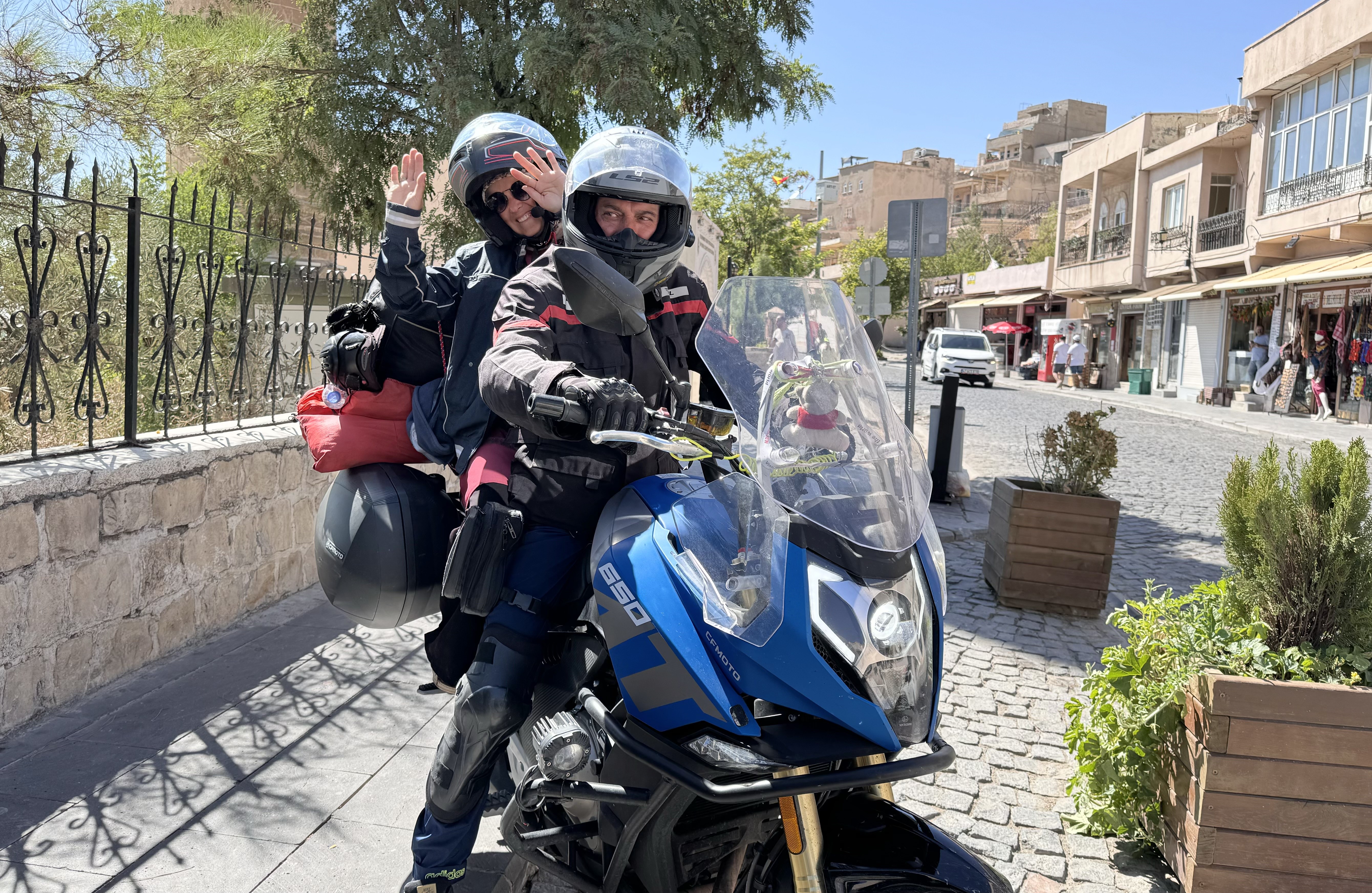 Sakarya'dan motosikletle yola çıkan iki arkadaş, eşleriyle birlikte Doğu ve Güneydoğu illerini kapsayan turlarında Mardin'e geldi.
