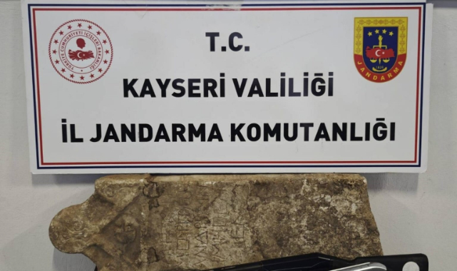 Kayseri’de jandarma ekipleri tarafından yapılan operasyonda Roma dönemi mezar steli ele geçirildi.