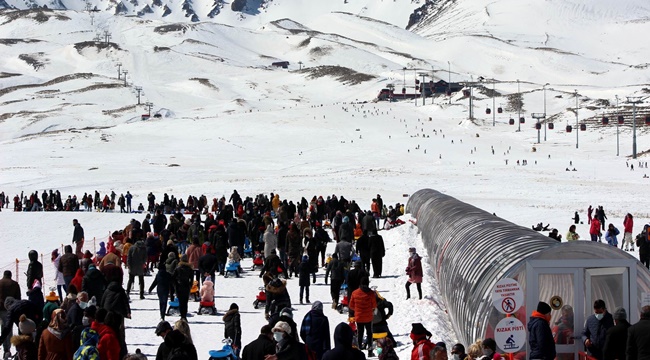 Öte yandan, Erciyes Kayak Merkezi'ndeki yoğunluk drone ile havadan görüntülendi.