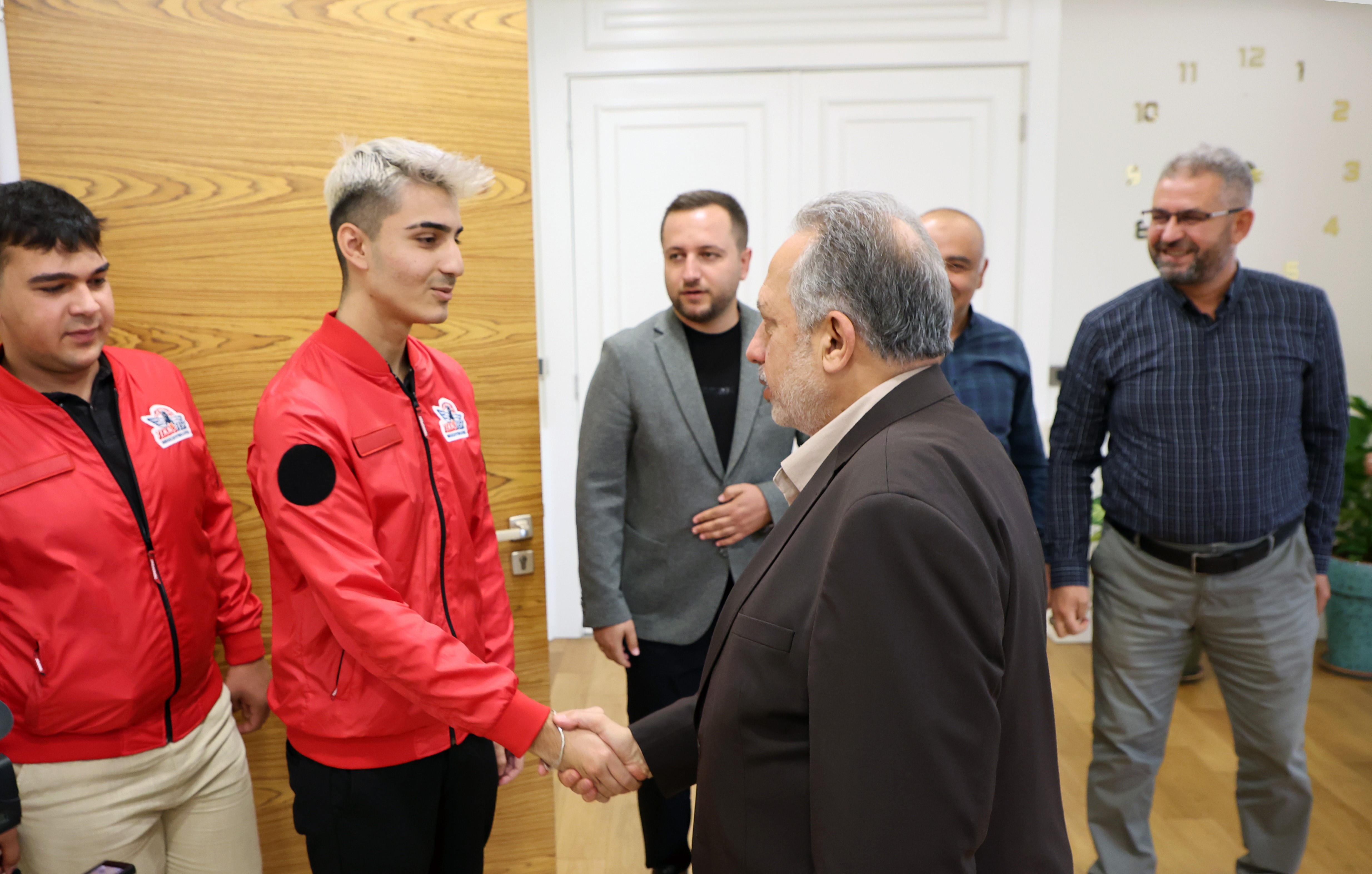 Ziyarette, Hürriyet Mesleki ve Teknik Anadolu Lisesi öğrencileri ve okul müdürü İzzet Serkuş, merkezin sağladığı eğitimlerle Sosyal İnovasyon kategorisinde 568 bin proje arasından 10. olarak Türkiye derecesi elde ettiklerini aktardı. Başkan Yalçın, gençlerin başarılarını kutlayarak, "Türkiye derecesi yapan Teknofest takımımızda yer alan öğrencilerimiz ve müdürümüz İzzet Serkuş teşekkür ziyaretinde bulundu. Her birinin gözlerinden ve gönüllerinden öpüyor, başarılarının devamını diliyorum" dedi.