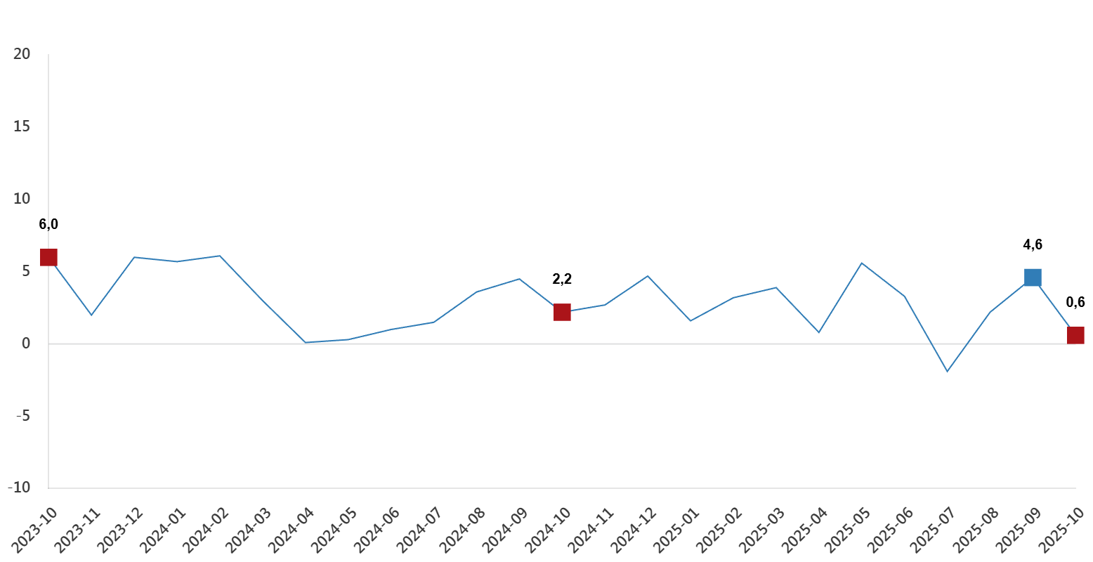 Ciro endeksleri aylık değişim oranları(%), Ekim 2025