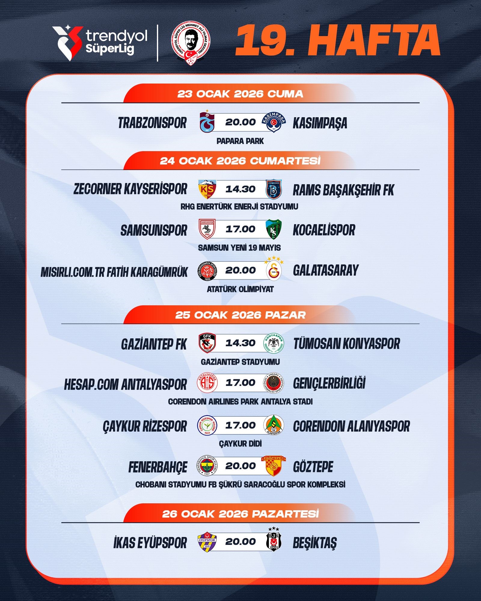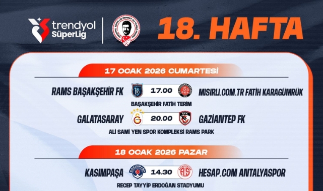 Türkiye Futbol Federasyonu (TFF), Trendyol Süper Lig’de 18 ve 19. haftada oynanacak maçların programını açıkladı.