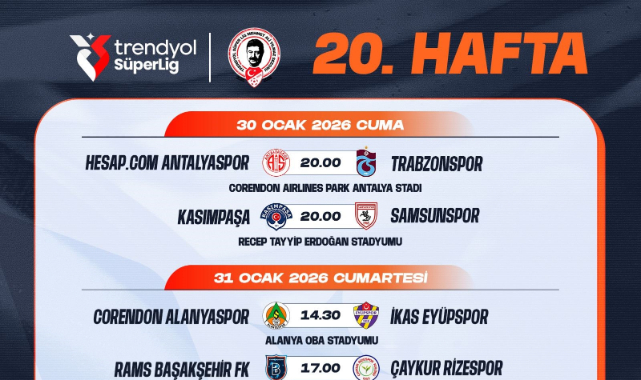 Türkiye Futbol Federasyonu (TFF), Trendyol Süper Lig'de 20-22. haftalar arasında oynanacak mücadelelerin programını duyurdu. Ligi 22. haftasında Trabzonspor'un, Beşiktaş'ı konuk edeceği karşılaşma 14 Şubat Cumartesi günü saat 20.00'de yapılacak.