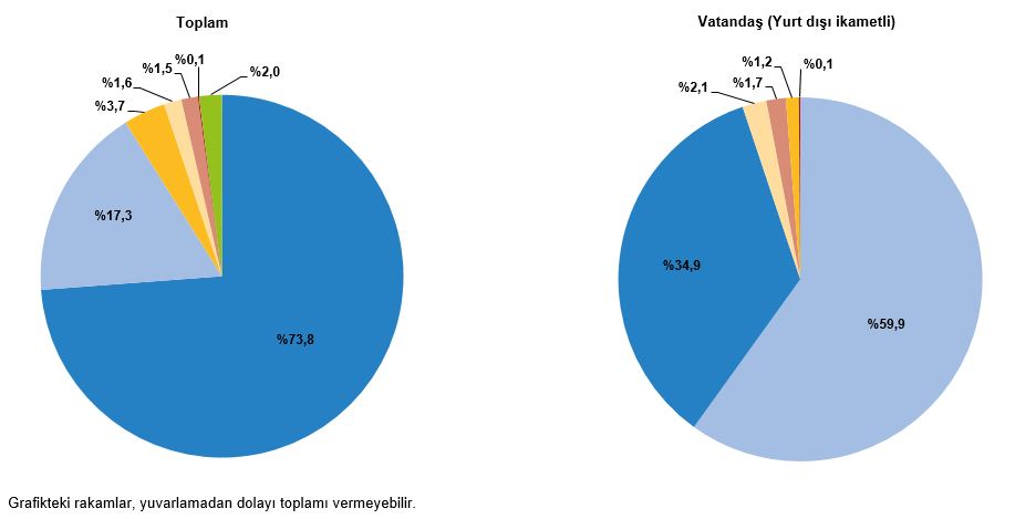 Türkiye İstatistik Kurumu (TÜİK), 2025 yılı üçüncü çeyrek Turizm İstatistikleri’ni açıkladı. Buna göre, Turizm geliri Temmuz, Ağustos ve Eylül aylarından oluşan üçüncü çeyrekte bir önceki yılın aynı çeyreğine göre yüzde 3,9 artarak 24 milyar 257 milyon 815 bin dolar oldu. Ziyaretçilerden elde edilen turizm geliri 24 milyar 46 milyon 779 bin dolar, transfer yolculardan elde edilen turizm geliri ise 211 milyon 37 bin dolar oldu. Ziyaretçilerin turizm gelirinin yüzde 16,1’ini ülkemizi ziyaret eden yurt dışı ikametli vatandaşlar oluşturdu.Ziyaretçiler, seyahatlerini kişisel veya paket tur ile organize etmektedirler. Bu çeyrekte ziyaretçiler tarafından yapılan harcamaların 15 milyar 975 milyon 385 bin dolarını kişisel harcamalar, 8 milyar 71 milyon 394 bin dolarını ise paket tur harcamaları oluşturdu.Ziyaretçi sayısı geçen yılın aynı çeyreğine göre yüzde 1,9 arttıÜlkemizden çıkış yapan ziyaretçi sayısı 2025 yılı üçüncü çeyreğinde bir önceki yılın aynı çeyreğine göre yüzde 1,9 artarak 23 milyon 639 bin 736 kişi oldu. Ziyaretçilerin yüzde 14,5’ini 3 milyon 438 bin 655 kişi ile yurt dışında ikamet eden vatandaşlar oluşturdu.Bu çeyrekte ülkemizde geceleme yapan ziyaretçilerin gecelik ortalama harcaması 100 dolar oldu. Yurt dışında ikamet eden vatandaşların gecelik ortalama harcaması ise 64 dolar oldu.Turizm geliri ve ziyaretçi sayısı, III. Çeyrek: Temmuz-Eylül, 2025