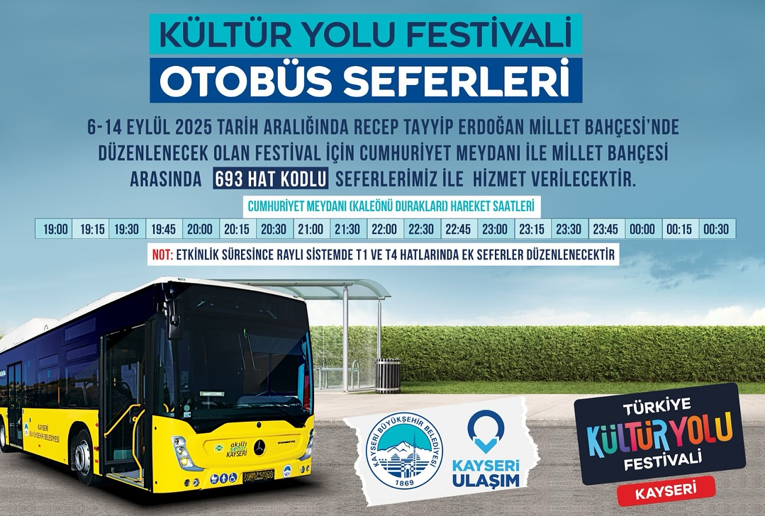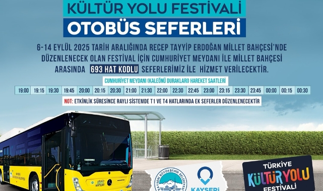 6-14 Eylül 2025 tarihleri arasında Recep Tayyip Erdoğan Millet Bahçesi’nde gerçekleşecek festival için Büyükşehir, Cumhuriyet Meydanı-Millet Bahçesi arasında 693 hat kodlu otobüs seferleri ile vatandaşların hizmetinde olacak. Hareket noktası Cumhuriyet Meydanı (Kale önü durakları) olan otobüs seferleri, 19.00-00.30 saatleri arası düzenli aralıklarla gerçekleştirilecek. Ayrıca etkinlik süresince T1 ve T4 raylı sistem hatlarında de ek seferler düzenlenecek.