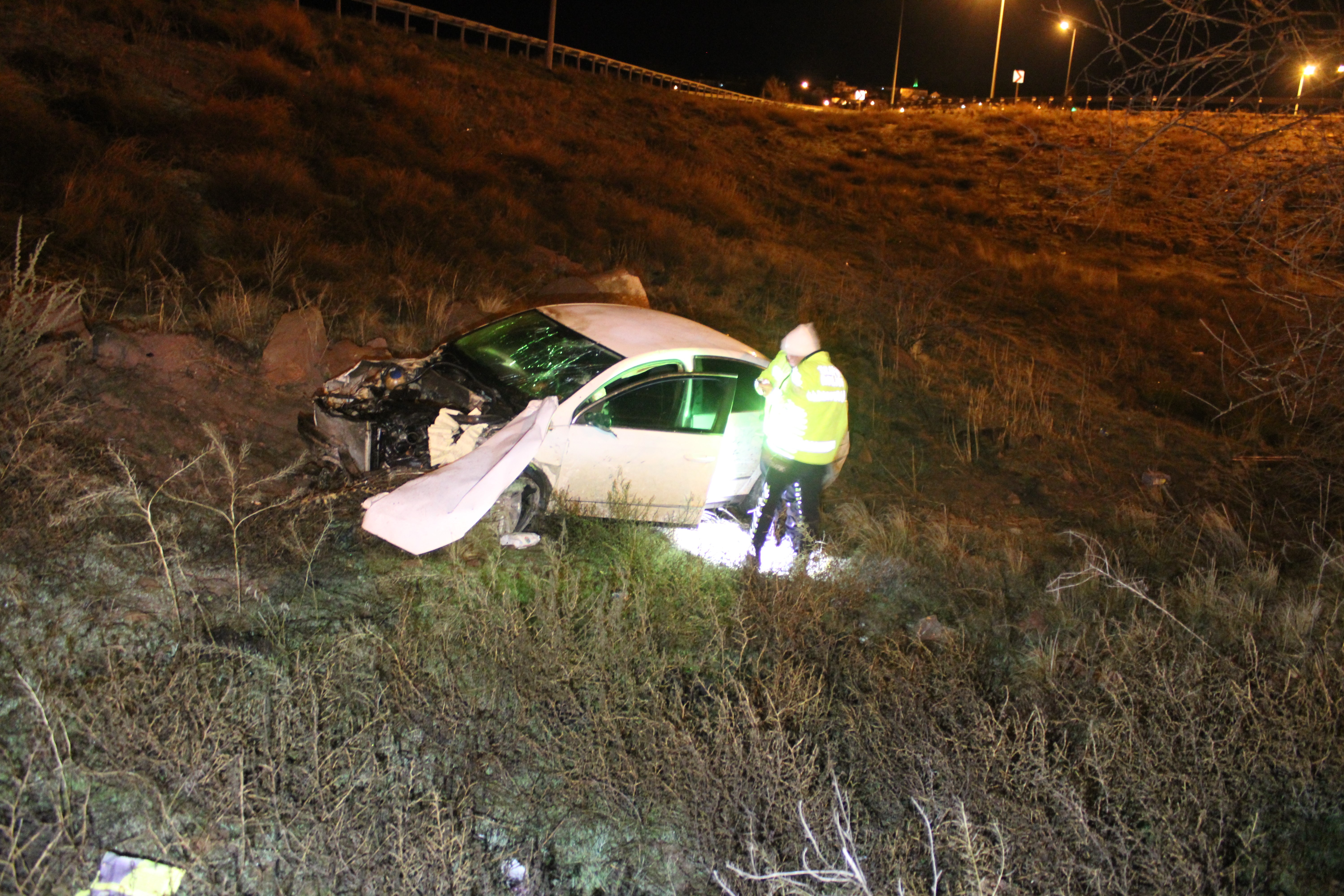 Kayseri'de meydana gelen kazada bariyere çarparak uçuruma düşen otomobilin sürücüsü yaralandı.