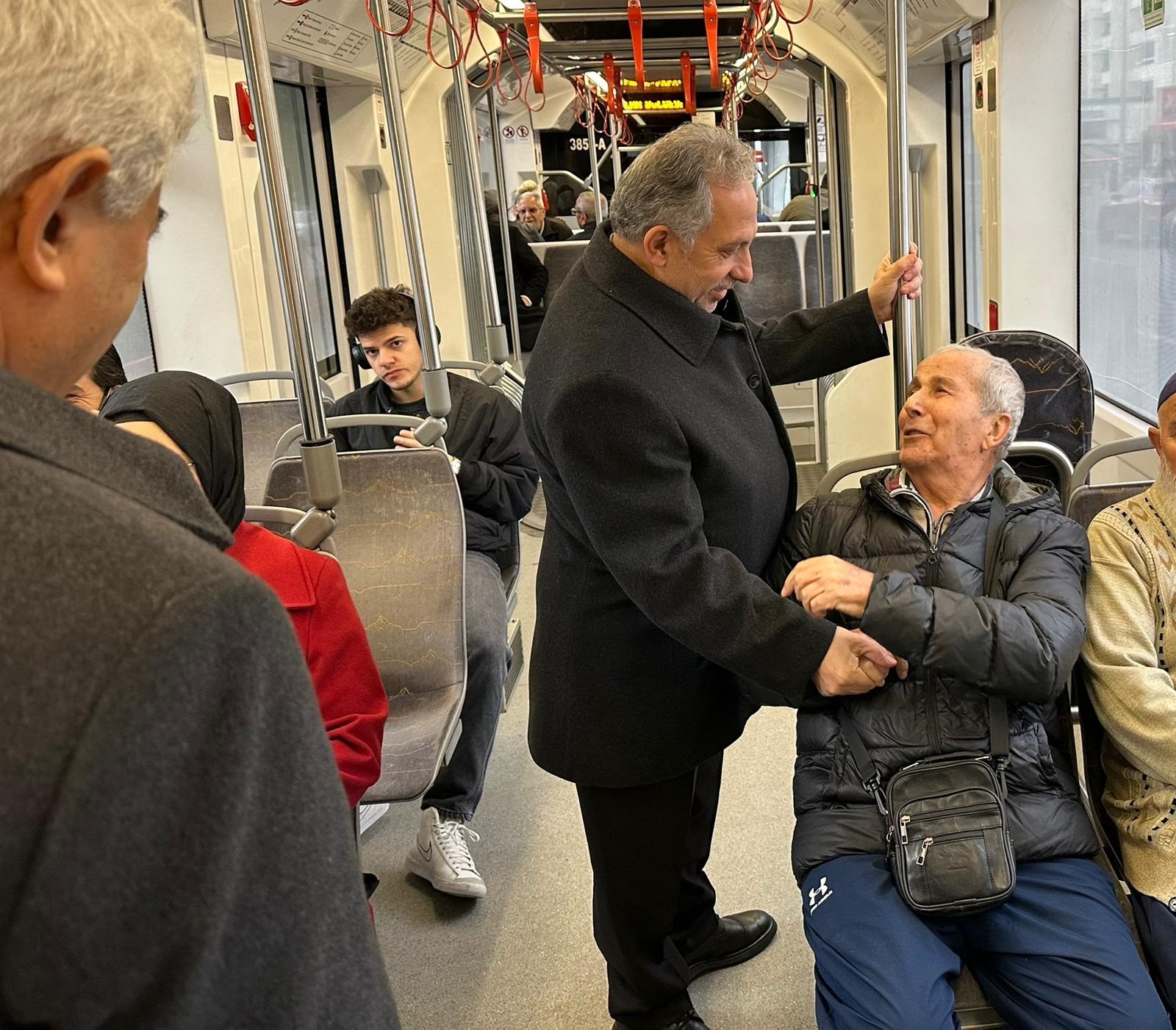 Her fırsatta Talas’ın sokaklarını karış karış gezen ve vatandaşlarla iç içe olan Talas Belediye Başkanı Mustafa Yalçın, bu kez de tramvayda görüldü.