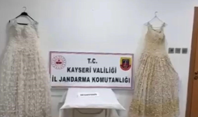 Kayseri’de jandarma ekipleri tarafından yapılan çalışmalarda iki gelinliğin üzerine boncuk şeklinde işlenmiş ve emdirilmiş 25 kilo 400 gram uyuşturucu madde ele geçirildi.