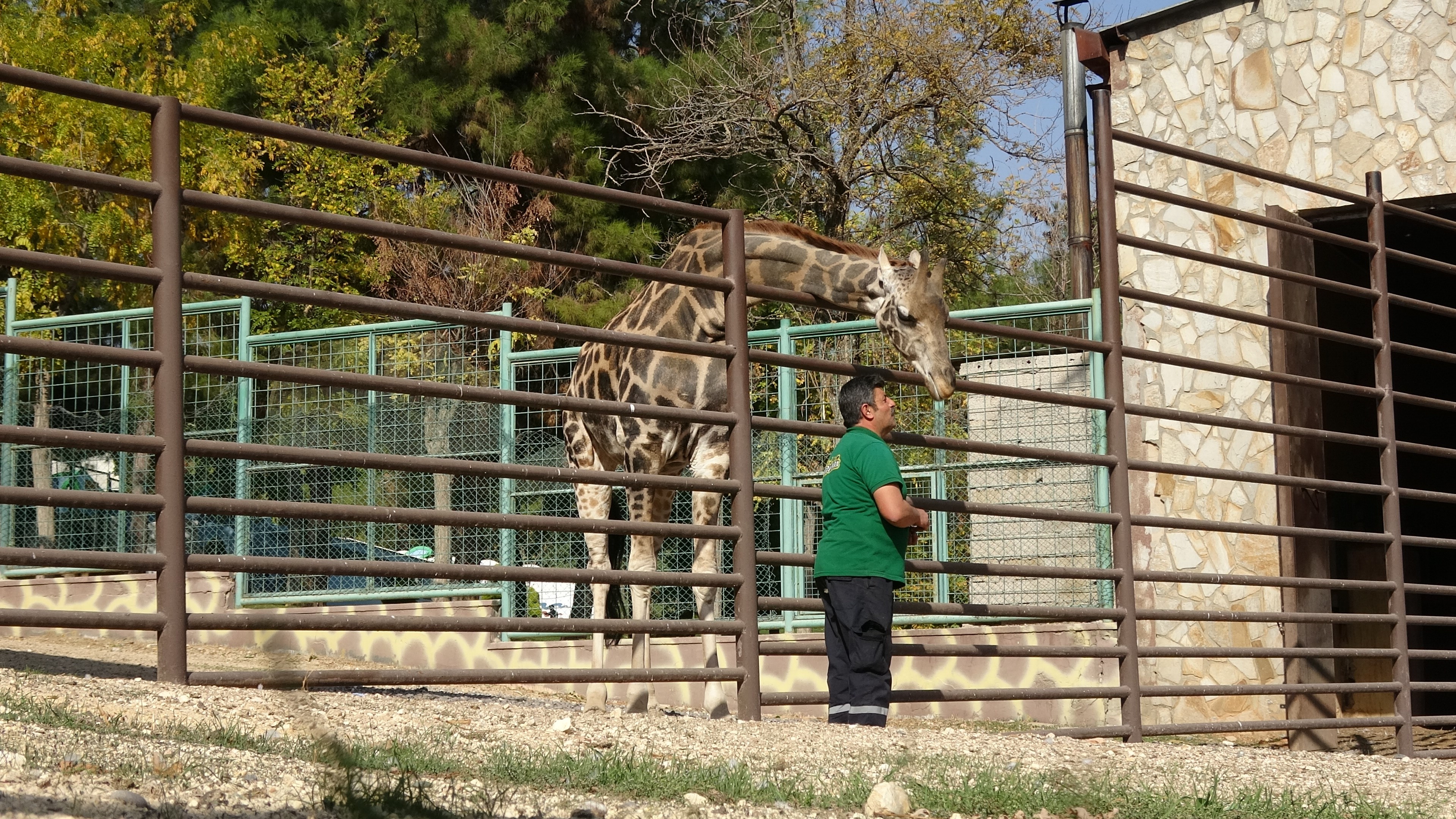 Dünya sıralamasında dördüncü, Türkiye'nin ise en büyük hayvanat bahçesi olan Gaziantep Doğal Yaşam Parkı'nın maskotları olan zürafalar ile bakıcıları Ali Görgel arasında oluşan bağ, görenlerin ilgisini çekiyor.